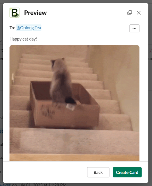 When you initiate the greeting card command /card, you'll encounter the following dialog. One of the fields in this dialog is labeled 'Cover Image URL.' You can paste the image URL from your clipboard using Ctrl + V (if you're using Windows) or CMD + V (if you're using Mac) into that field. If nothing happens, it's possible that your clipboard has been overwritten, and you'll need to repeat the steps to obtain an image URL again.