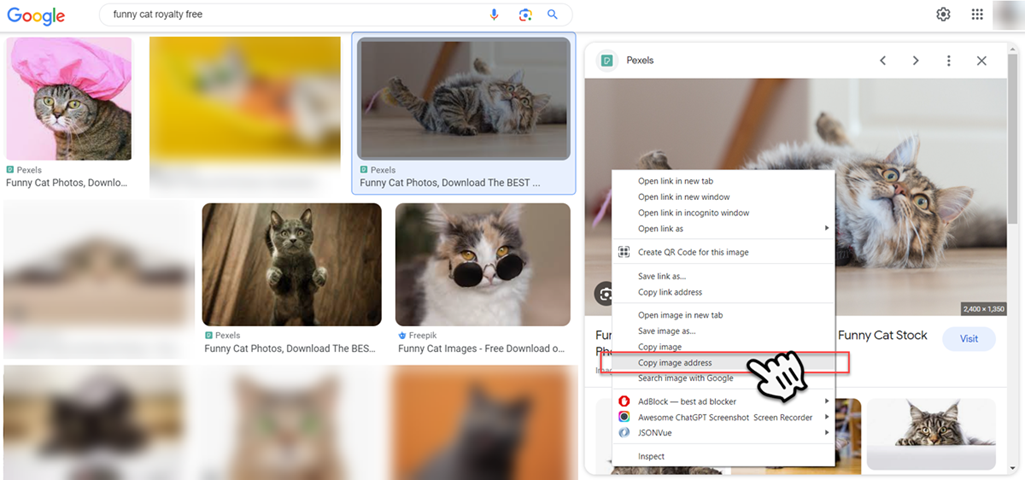 Select 'Copy image address', and the image URL will be copied to your clipboard.
