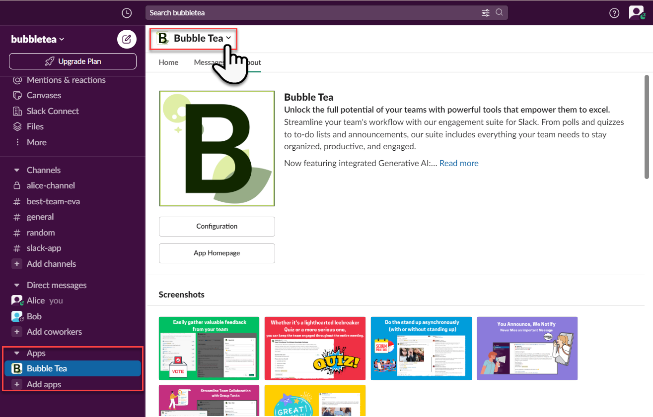 We aim to pin the app in Slack because the app icon tends to disappear after a period of time, necessitating a search to locate and display it in your Slack window once more. While this process is not inherently complex, it can become tedious when repeated frequently.