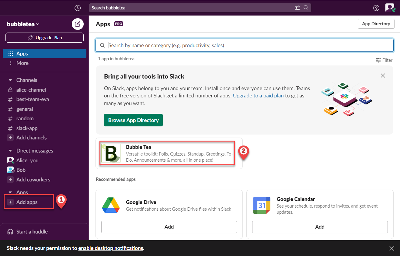 Click on the app you want to add. In this case, we want to add the 'Bubble Tea' app because it's a great app, and we like it a lot.